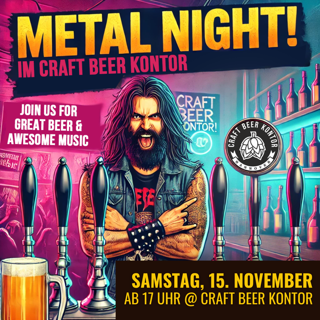 Am 31. August wird das Kontor ab 17 Uhr zur Heavy Metal Location! Max von der Brauerei Schnuckebräu aus Walsrode ist am Start und bringt deren besten Biere mit und rockt mit uns den Tresen – eine Nacht voller einzigartiger, handgebrauter Kreationen, die perfekt zur harten Musik passen.